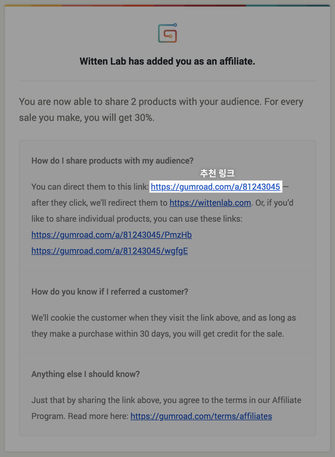 - 위튼랩 제휴 프로그램은 Gumroad를 통해 관리됩니다. 더 자세한 내용은 여기를